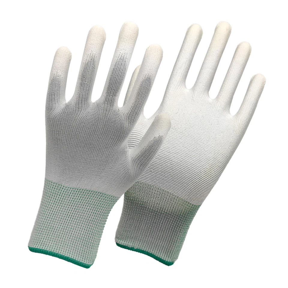PU: n päällystetyt kämmensuojakäsineet, ohut kumikerros ja kulutusvastus, kyynel ja vetolujuus, joustava, joustava iso istuvuuskäsi, sillä ei ole hajua ja mukava käyttää, ei ole helppo värjätä happohapon korroosionkestävyys, liukuminen ja kulutusvastus
